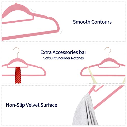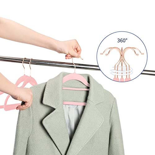 Fasiner Grucce da donna in velluto da 60 pezzi, lunghe 42 cm, antiscivolo in feltro, con gancio girevole a 360°, sottili e salvaspazio, per cappotti e abiti, abiti, giacca (rosa)