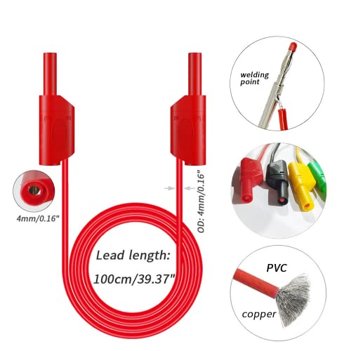 Fasizi Cavo Spina a Banana, 5 Pezzi Kit Cavi di Prova Elettronici Spina a Banana da 4 mm Cavo di Prova in Morbido Silicone di Sicurezza Cavo di Prolunga 14 AWG Set di Cavi di Prova Multimetro