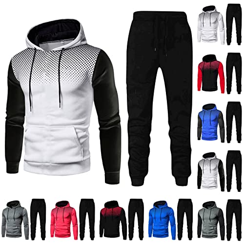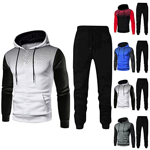 FASLOLSDP Tuta da uomo basic, Colorblock da jogging, felpa con cappuccio e pantaloni, tuta sportiva da uomo con cappuccio, pantaloni sportivi da uomo, Bianco-1, M