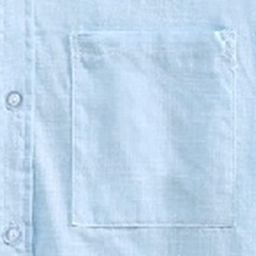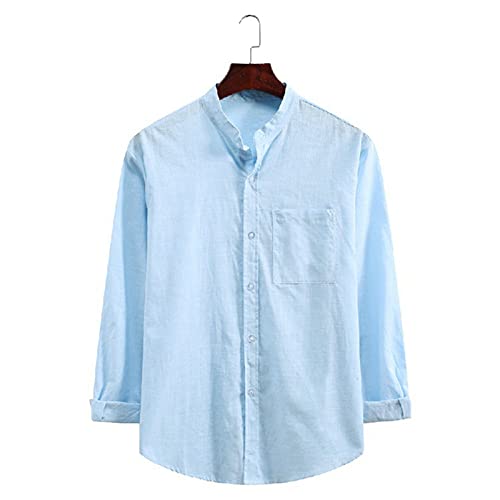 FASLOLSDP Camicia da uomo in cotone e lino, a maniche lunghe, tinta unita, per il tempo libero, casual, leggera, Henley, con bottoni, cardigan, alla moda, per le vacanze, da spiaggia, Y azzurro, XL