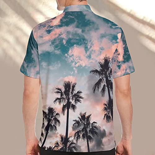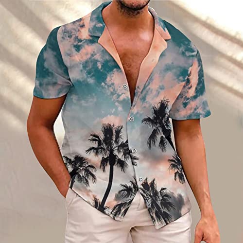 FASLOLSDP Camicia hawaiana, da uomo, casual, a maniche corte, con colletto rovesciato, bottoni, alla moda, con stampa Funky Chic, Colore: rosa., XXL