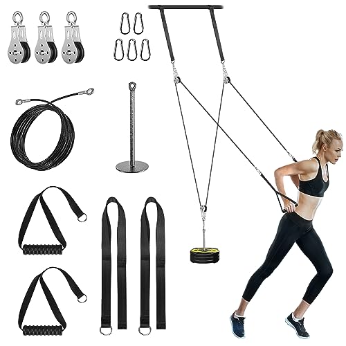 【Set di Allenamento per Home Gym】 FASPUP lat machine carrucola palestra casa con: 3 x puleggia, cavo in acciaio 1 x 4m, 1 x pin di estensione, 2 x maniglia, banda di sospensione 2 x, 5 x moschettoni.
