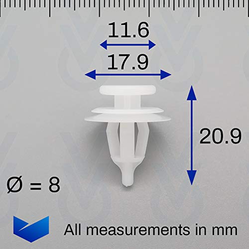 VVO Fasteners - Clip di fissaggio per portellone posteriore, in plastica, confezione da 10, colore: Bianco