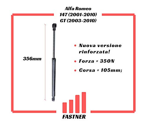 Fastner Compatibile con Alfa Romeo Coppia Ammortizzatori Molle a Gas Pistoni Pistoncini Anteriori Cofano Motore 147 (2001-2010), GT (2003-2010) 46739202