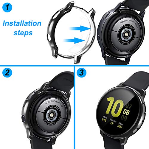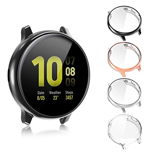 FASTSNAIL Cover per Samsung Galaxy Watch Active 2 40mm [4Pezzi] Custodia Piena Copertura Cover Morbide Pellicola Protecttiva (Trasparente+Nero+Oro Rosa+Argento)