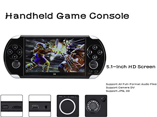 ☞ 【Portatile】 Film o video possono essere visualizzati in qualsiasi momento. Il mini videogioco portatile con schermo a colori da 5,1 pollici supporta Rmvb Avi Mp4 3Gp e altri formati. Nad, la risoluzione della fotocamera posteriore è di 300.000 pixel e può catturare immagini o video.