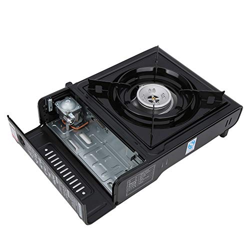 FastUU Fornello a Gas butano Portatile, fornello da Campeggio con accensione Elettronica, griglia da Campeggio Antiscivolo con Custodia per Barbecue all'aperto, Picnic, frittura, grigliate(Nero)