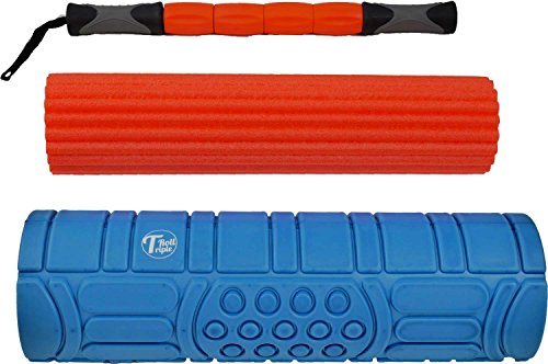 Faszie ruolo - Triple Roll Blue » Das Original 3 in 1 Set « - Rotolo massaggio per massaggi - Trigger Point Stick - Foam Roller - Fitness Pilates Yoga - 3 durezze - lunghezza 45 cm - uebungsvideos per schiena, gambe, braccia