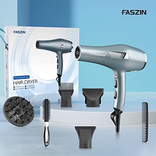 Faszin Asciugacapelli Professionale con Ioni, Rapida Salon Phon per Capelli 2500W, con Diffusore, Ugello, Pettine Concentratore, 2 Velocità 3 Impostazione di Calore, per la famiglia, salone di capelli
