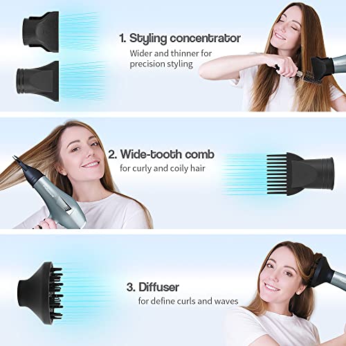 【7 modalità di asciugatura】Con 3 impostazioni di calore precise (alta/media/bassa), impostazioni a 2 velocità (moderata/veloce) e 1 pulsante di raffreddamento, l'asciugacapelli Faszin ti consente di trovare la combinazione di asciugatura perfetta per diversi stili e tipi di capelli.