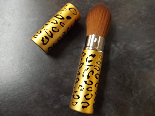 Fat-catz-copy-catz, morbido pennello da viaggio per cosmetici, compatto e retrattile, colore dorato con stampa leopardata, per cipria, fard e altro