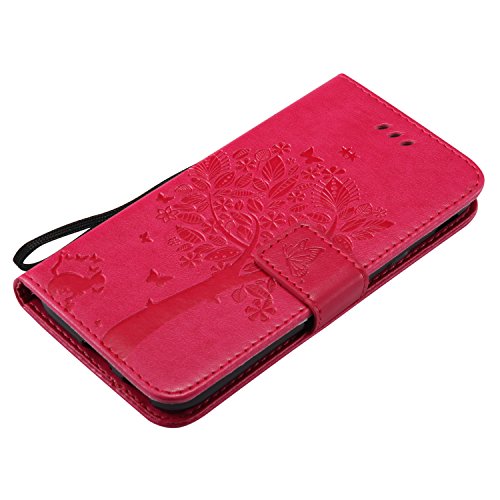 Fatcatparadise Cover Galaxy J3 2017/J330 [Vetro Temperato Screen Protector], (Gatto e Albero Serie) Retro Flip Caso Portafoglio Custodia Fondina Silicone PU per Samsung Galaxy J3 2017/J330 (Fuxia)