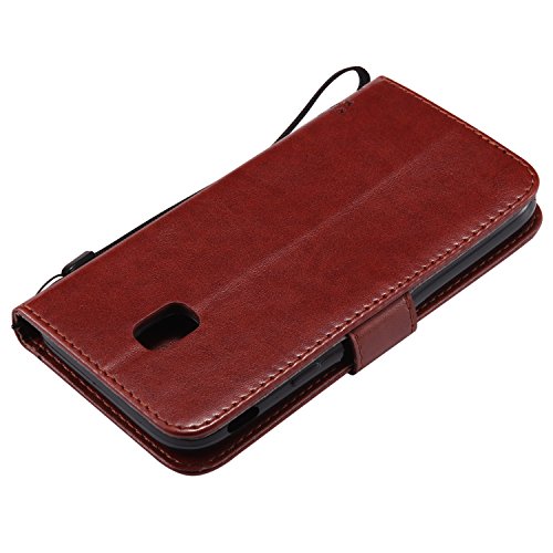 Fatcatparadise Cover Galaxy J3 2017/J330 [Vetro Temperato Screen Protector], (Gatto e Albero Serie) Retro Flip Caso Portafoglio Custodia Fondina Silicone PU per Samsung Galaxy J3 2017/J330 (Castagno)