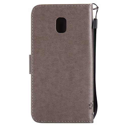 Fatcatparadise Cover Galaxy J3 2017/J330 [Vetro Temperato Screen Protector], (Gatto e Albero Serie) Retro Flip Caso Portafoglio Custodia Fondina Silicone PU per Samsung Galaxy J3 2017/J330 (Grigio)