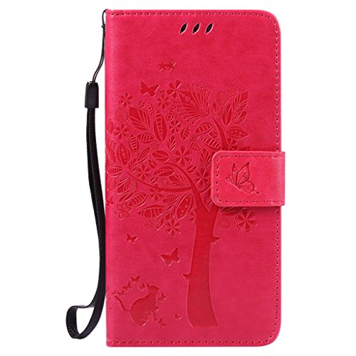 Fatcatparadise Cover per Galaxy J5 2016 / J510 [Gratuito Vetro Temperato Screen Protector], [Gatto e Albero Serie] Flip Caso in Pelle Portafoglio Silicone PU per Galaxy J5 2016 / J510 (Rosa)