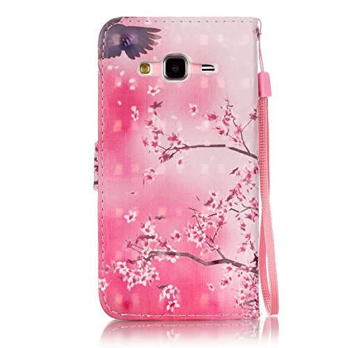 Fatcatparadise Cover per Galaxy J3 2016 / J310 [con Pellicola in Vetro Temperato], Flip Caso in Pelle Portafoglio Custodia Fondina Silicone Slot Schede PU Wallet Case Custodia (Fiori di Ciliegio)