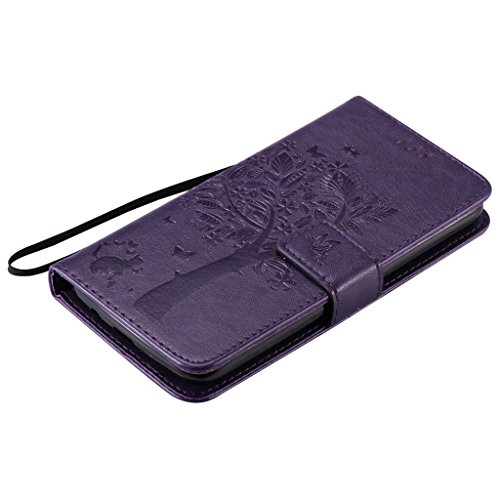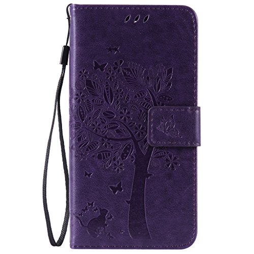 Fatcatparadise Cover LG K8 2016 [Gratuito Vetro Temperato Screen Protector], (Gatto e Albero Serie) Flip Caso in Pelle Portafoglio Custodia Fondina Silicone Slot Schede PU per LG K8 2016 (Violet)