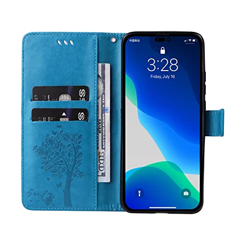 Fatcatparadise Cover per Samsung Galaxy M33 5G, Custodia Samsung M33 5G, Custodia Portafoglio a Libro in Pelle Flip Cover e TPU Silicone con Funzione Supporto Chiusura Magnetica (Blu)