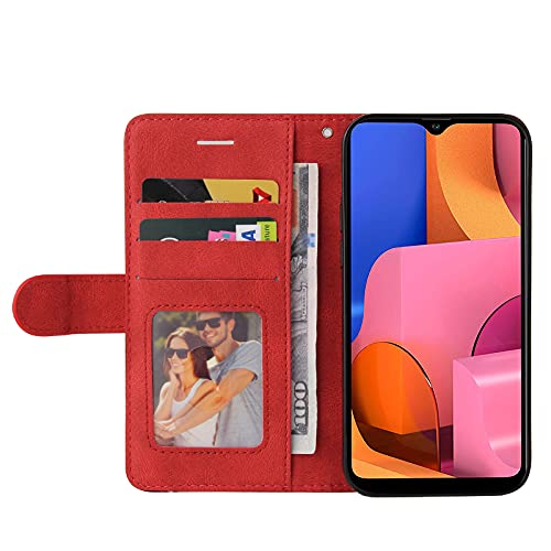 Fatcatparadise Cover per Samsung Galaxy A20S, Flip Caso in PU Pelle Case Cover Libro Portafoglio Protettiva Custodia con TPU Sottile Antiurto,[Kickstand][Slot per Schede][Chiusura Magnetica] (Rosso)