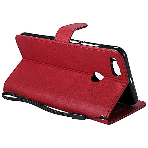 Fatcatparadise Cover Xiaomi Mi A1,Cover Mi 5X, Custodia Libro Pelle PU e TPU Silicone con Funzione Supporto Chiusura Magnetica Portafoglio Libretto Bumper Case per Xiaomi Mi A1 / Mi 5X (Rosso)