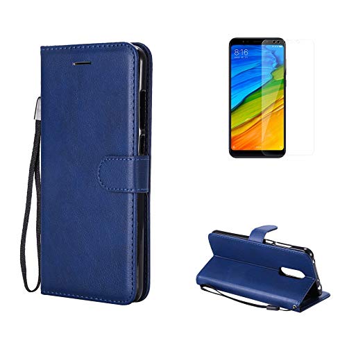 Fatcatparadise Cover Xiaomi Redmi 5 Plus, Custodia Libro Pelle PU e TPU Silicone con Funzione Supporto Chiusura Magnetica Portafoglio Libretto Bumper Case per Xiaomi Redmi 5 Plus (Blu)