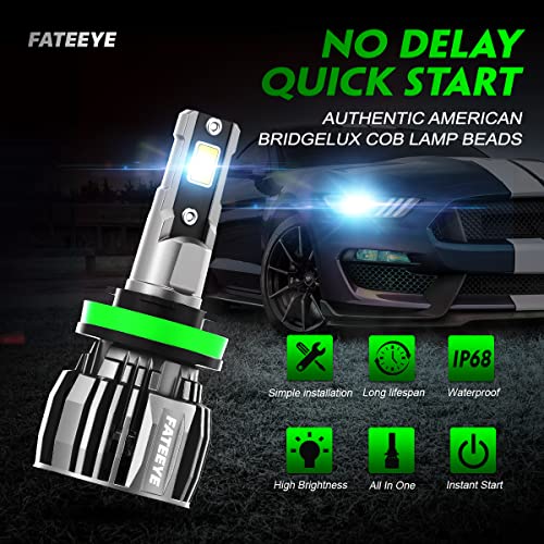 FateEye Lampadina LED H11/H8/H9, 13000LM Super Bright LED Kit di conversione di fari per auto, chip di livello superiore 60W, controllo della temperatura di ricambio per fari alogeni, 6500K