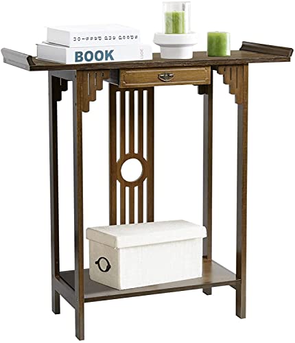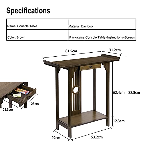 FATIVO Tavolo Consolle ingresso bambu, Tavolino da Ingresso consolle Tavolo stretto e lungo consolle vintage per Soggiorno Corridoio Sala Consolle ingresso moderno con cassetto 81,5x31,2x82,8 cm