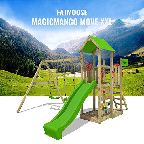 FATMOOSE Parco giochi MagicMango Move XXL con SuperSwing rosso con altalena doppia e scivolo