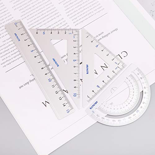 Lo strumento di geometria 4 in 1 contiene un righello dritto, un goniometro, 2 righelli a triangolo (45 e 60 gradi), per gli studenti che usano la scuola.