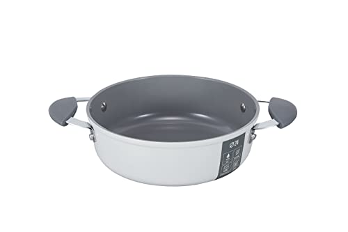 Fatto in Casa da Benedetta Tegame Antiaderente (diametro 24 cm) Alluminio 100% riciclabile con Coperchio in Vetro - Adatto anche per Induzione, Non contiene Metalli pesanti (Colore Grigio)