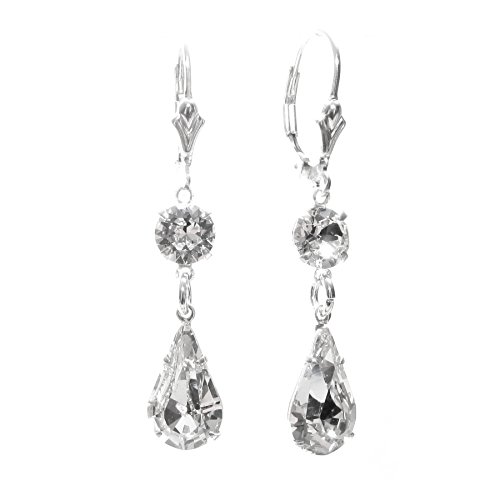 Orecchini a monachella in argento Sterling accuratamente realizzato con diamante brillante bianco a goccia con cristalli di Swarovski®