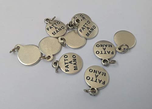 Fatto A Mano targhette Metallo Placcato Argento. 10 Charm Decorazioni da Cucire su Abbigliamento, Accessori, bigiotteria. Regalo Originale per Amanti creazioni Fai da Te. Diametro medaglietta 1,1 cm