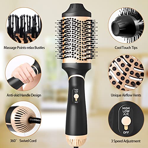 ❤ 【Risparmio di tempo e asciugatura rapida】 La spazzola ad aria calda è dotata di un motore da 1000 W e un ventilatore a 360 °, che fornisce vento forte e flusso d'aria termico a 360 °, puoi asciugare i capelli rapidamente e risparmiare tempo. Corpo leggero e cavo lungo 2 metri, girevole a 360 gradi, facile da usare, previene la deformazione del cavo, ti aiuta a creare uno stile arricciato morbido e sciolto e qualsiasi look tu voglia.