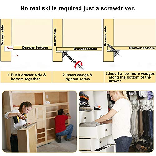 【Facile da usare】Spingere questi connettori dei pannelli del mobile con un cacciavite a cricchetto o un trapano nella piega sulla parete posteriore o sul fondo del cassetto e serrarli in diagonale. Non è richiesta alcuna reale abilità, basta un cacciavite per risolvere i problemi di cedimenti dei cassetti e di inceppamenti di vestiti nello spazio.