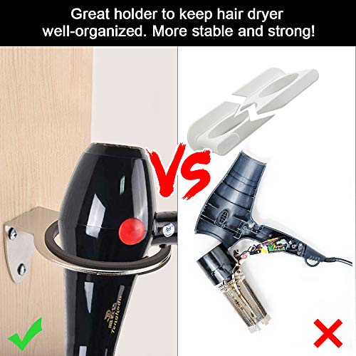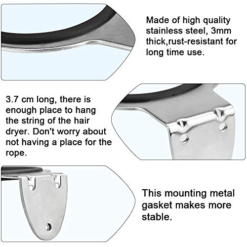 ✅【Più stabile】La posizione di installazione della vite della staffa dell'asciugacapelli adotta il principio del triangolo. Fissare la staffa alla parete con tre viti per ottenere il miglior effetto di installazione. Quindi può essere durevole. Questo design è più stabile della staffa per asciugacapelli a due fori con montaggio a vite. Inoltre, includiamo anche una guarnizione in acciaio inossidabile per rendere più durevole la staffa sulla base.