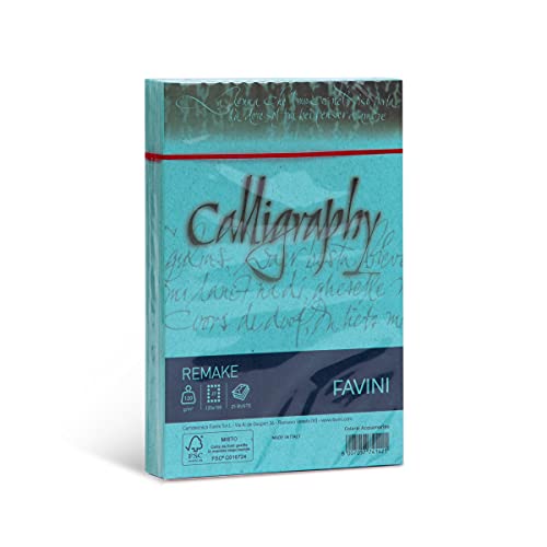 Favini A57G217 Calligraphy buste Nature Remake colore Acquamarina 120 gr/m2 formato 12x18 cm 25 buste ideali per Inviti Partecipazioni Diplomi Menù Made in Italy