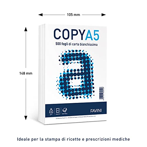 Favini A620505 Copy A5 Scatola da 12 Risme di carta BIANCA da 500 fogli Formato A5 (14,8x21 cm) Made in Italy