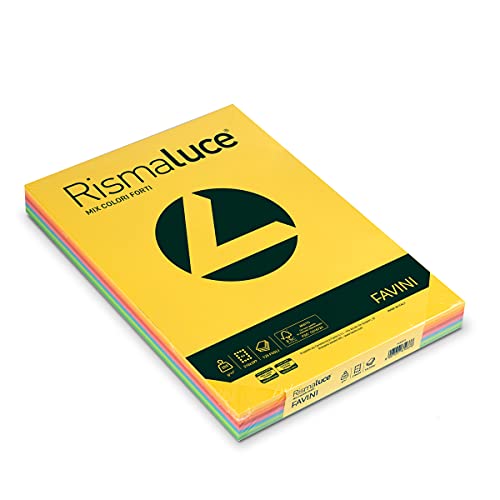 Favini A67X114 Rismaluce Mix Risma da 125 Cartoncini da 200gr assortiti in 8 colori intensi formato A4 (21x29,7 cm) Made in Italy