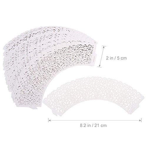 Diametro della base: 5 cm. Diametro superiore: 8 cm. Altezza: 5 cm. Il pacchetto include: 50pcs cupcake