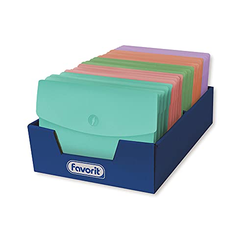 Favorit Buste Con Bottone Pastello, A6, Polipropilene, Opaco, Confezione da 20 pezzi, Colori Assortiti