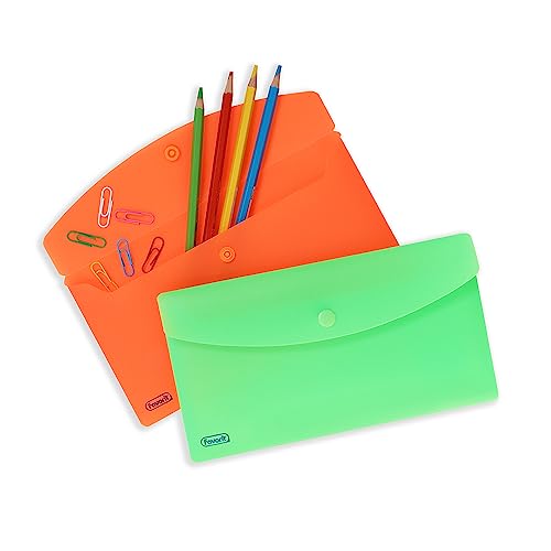 Favorit Buste Con Bottone Neon, DL, Polipropilene, Opaco, Confezione da 5 pezzi, Colori Assortiti