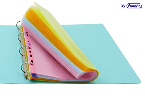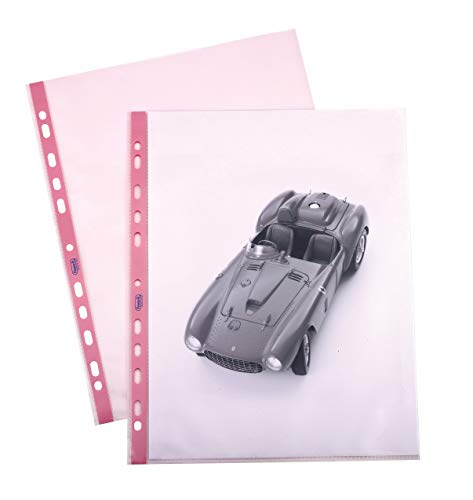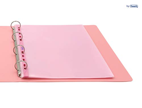 Favorit Buste Perforate, Lucide, Alto Spessore, 22 x 30 cm, 25 Pezzi, Trasparenti color Rosa pastello con Banda Colorata in Tinta