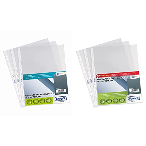 Favorit Buste Perforate, Lucide, Alto Spessore, 23 x 33 cm, 25 Pezzi, Trasparenti & Buste Perforate, Lucide, Medio Spessore, 22 x 30 cm, 50 Pezzi, Trasparenti