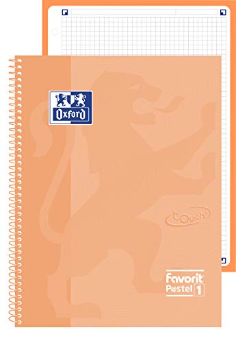Favorit Oxford 400115561 Maxi Quaderno Spiralato P@stel1 Quadretti, Rigatura 5 mm, Pesca Pastello