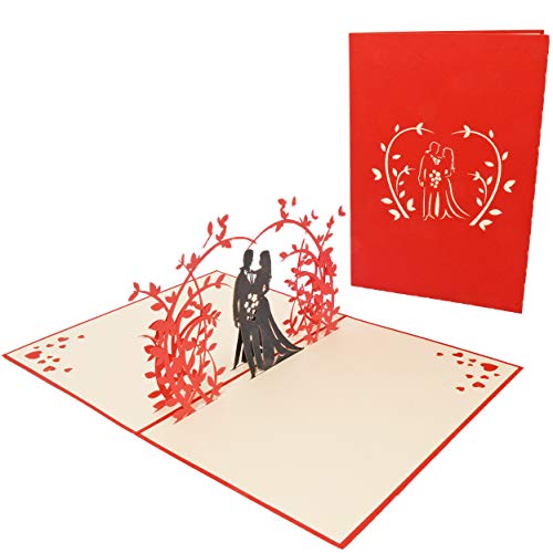 Favour Pop Up Biglietto di auguri per il matrimonio, un'opera d'arte in filigrana in cui, una volta aperta, si dispiega la figura di una coppia di sposi sotto un'arcata di rose, TW016