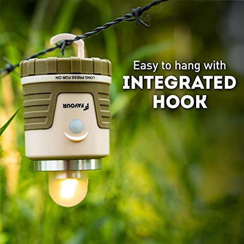 Favour Lampada Campeggio a LED L1061 - Lanterna da Esterno Portatile, Impermeabile IPX4 e Antiurto - Lampada da Campeggio a Batteria - 7 Modalità di Illuminazione, Inclusa Modalità Lume di Candela