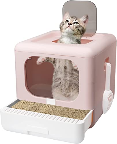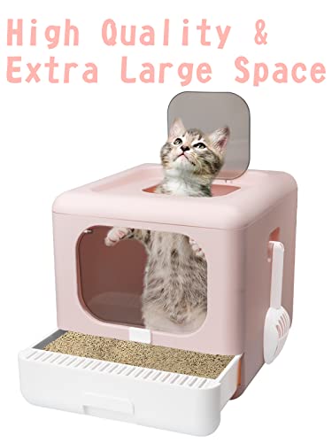FAYDUDU Lettiera Gatto Chiusa Grande XXL Toilette per Gatti Cassetta Lettiera Gatto Antiodore Lettiera per Gatti con Coperchio Cassetta Igienica per Gatti Portatile con Cassetto Paletta (Rosa)