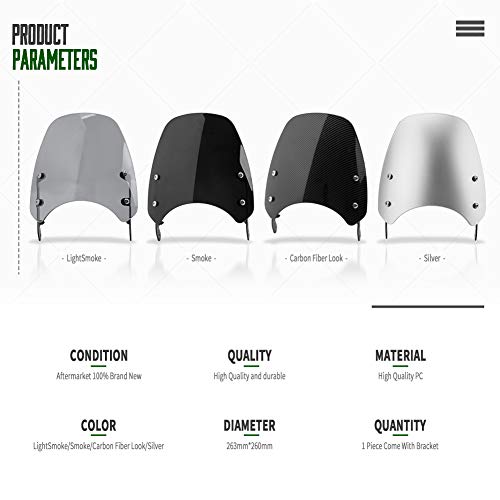 Caratteristica: ♦♦ Questo schermo per parabrezza è stato facile da installare. Basta allineare i fori di montaggio, inserire le viti e serrarle. Tutti i bordi sono lisci e non graffieranno le mani.