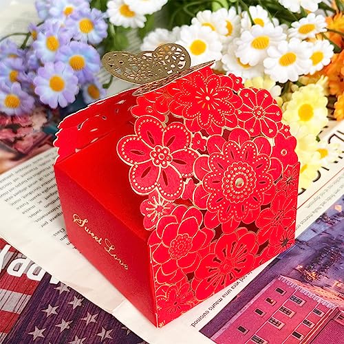 Fayemint 30 Pezzi Scatoline Bomboniere a Motivo Farfalle, Butterfly Scatole di Caramelle, Scatola di Caramelle di Nozze, per Matrimonio Feste Compleanno (Rosso)