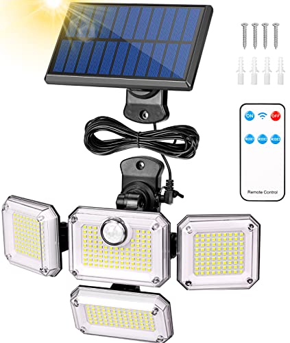 FAYIBUY Lampada Solare da Esterno con Sensore di Movimento, IP65 Impermeabile Luce Solare [333LED/3Modes] Luci Solari da Giardino, 240°Ampio Angolo Faretti Solari con Telecomando, Cavo da 5M